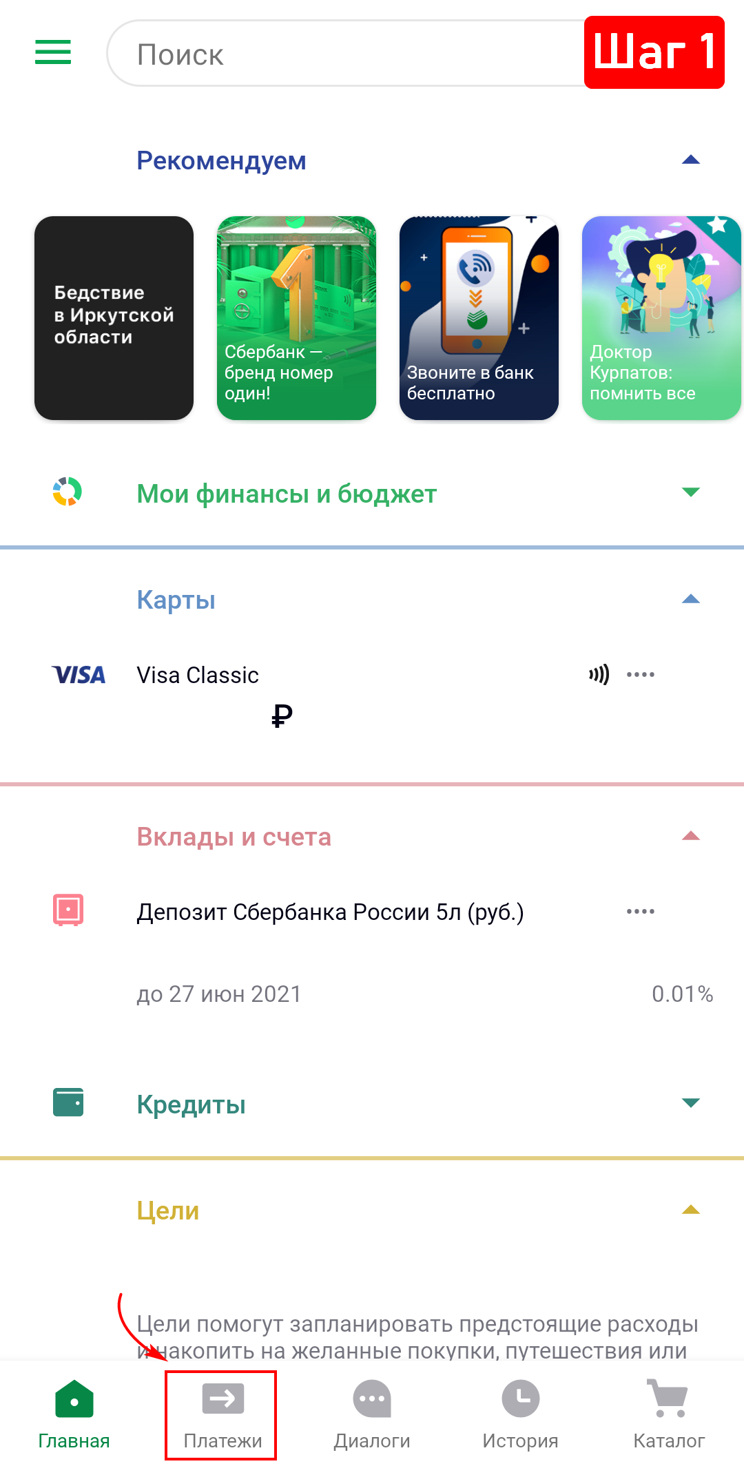 1. Запустите приложение, авторизуйтесь и в нижней части выберите «Платежи».