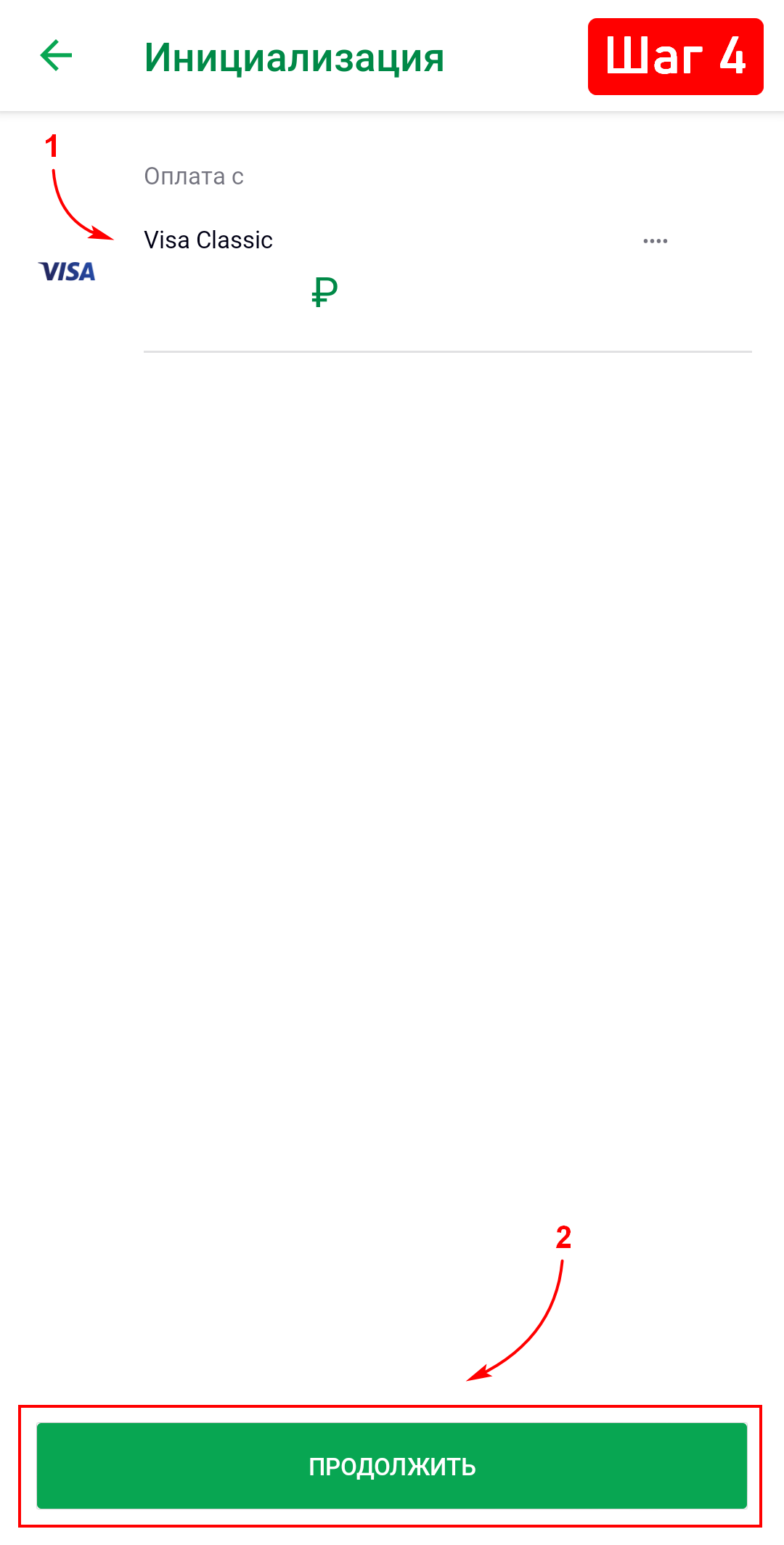 4. Приложение автоматически распознает данные и откроет экран выбора источника оплаты, если карт несколько, то выберите необходимую, если карта одна, то просто нажмите «Продолжить».